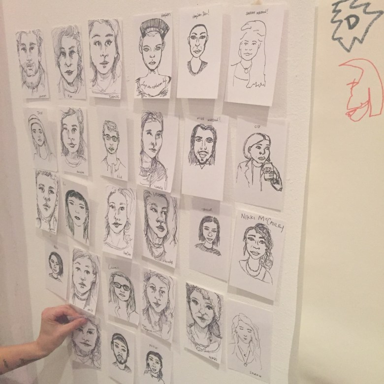 The show was last night and I’m so glad I went! I was super nervous the whole time, but it was pretty amazing to see my art on the wall and in a zine, to meet some new people, and enjoy a night of stand-up comedy, music, and art. Here are some photos from the show: