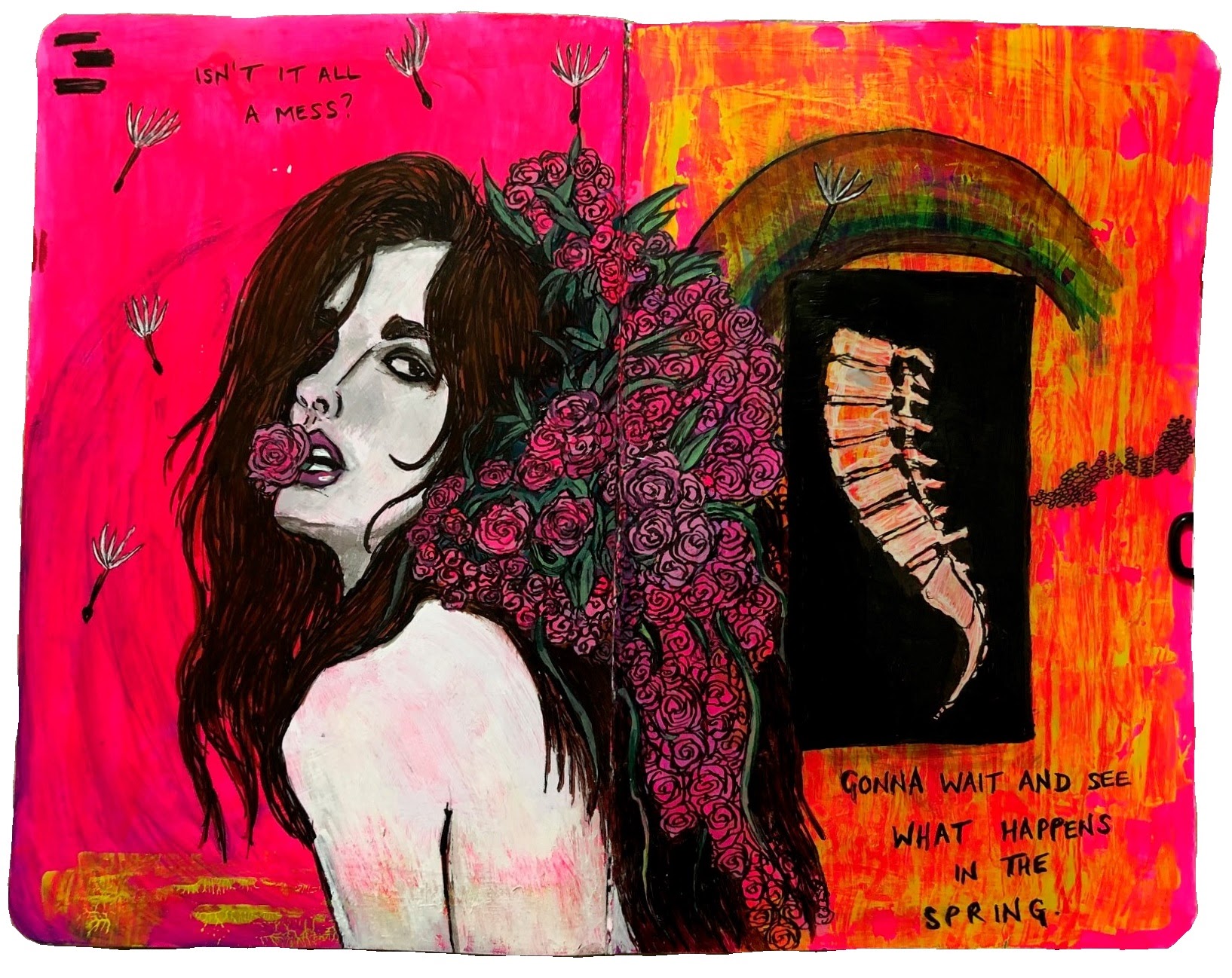 I was gifted this Stillman & Birn Zeta Series journal when I left my job in California in February 2022. It took me a while to fill since I, unfortunately, wasn’t a fan of the paper. It was weirdly too smooth to draw/paint on. I mostly filled it up with gel printing/monoprinting experiments from February 2024. The pages are organized in the order they appear in the journal.
